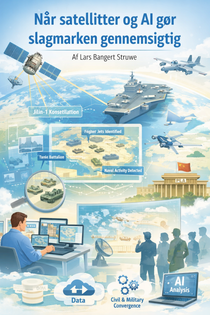 Kombinationen af kommercielle satellitter og kunstig intelligens peger mod et nyt informationsmiljø i krig. Slagmarken kan i stigende grad observeres fra rummet, analyseres automatisk og offentliggøres næsten i realtid.